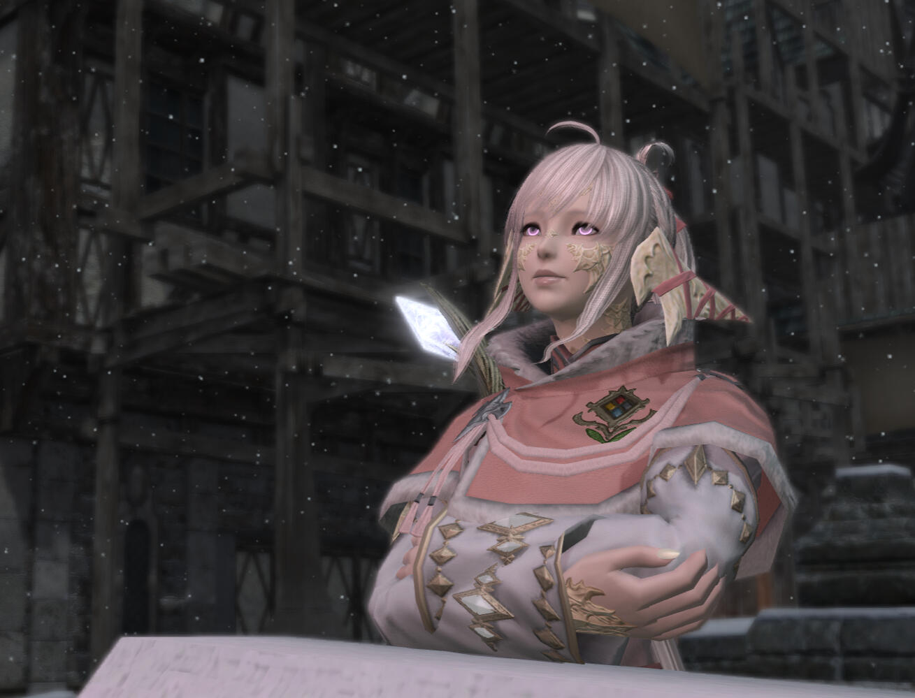...and yet she still found herself left wanting. she hesitated on making any changes to her life, but eventually life changed itself for her. after a mission gone wrong that stuck with her, she moved herself from the forests of the shrouds to the spires of a once-inaccessible ishgard to take up her mother's craft of Astromancy; as she intended to when she originally left home. fearing the lack of stability that the carline canopy inn rooms and steady work had brought her in the shroud, she took on other work as well; the most notable and different being a server's job, at an Empyreum tavern. work that allowed her to, for once, meet people like her. who had come here for a changing of pace, and needed comradery above all else.