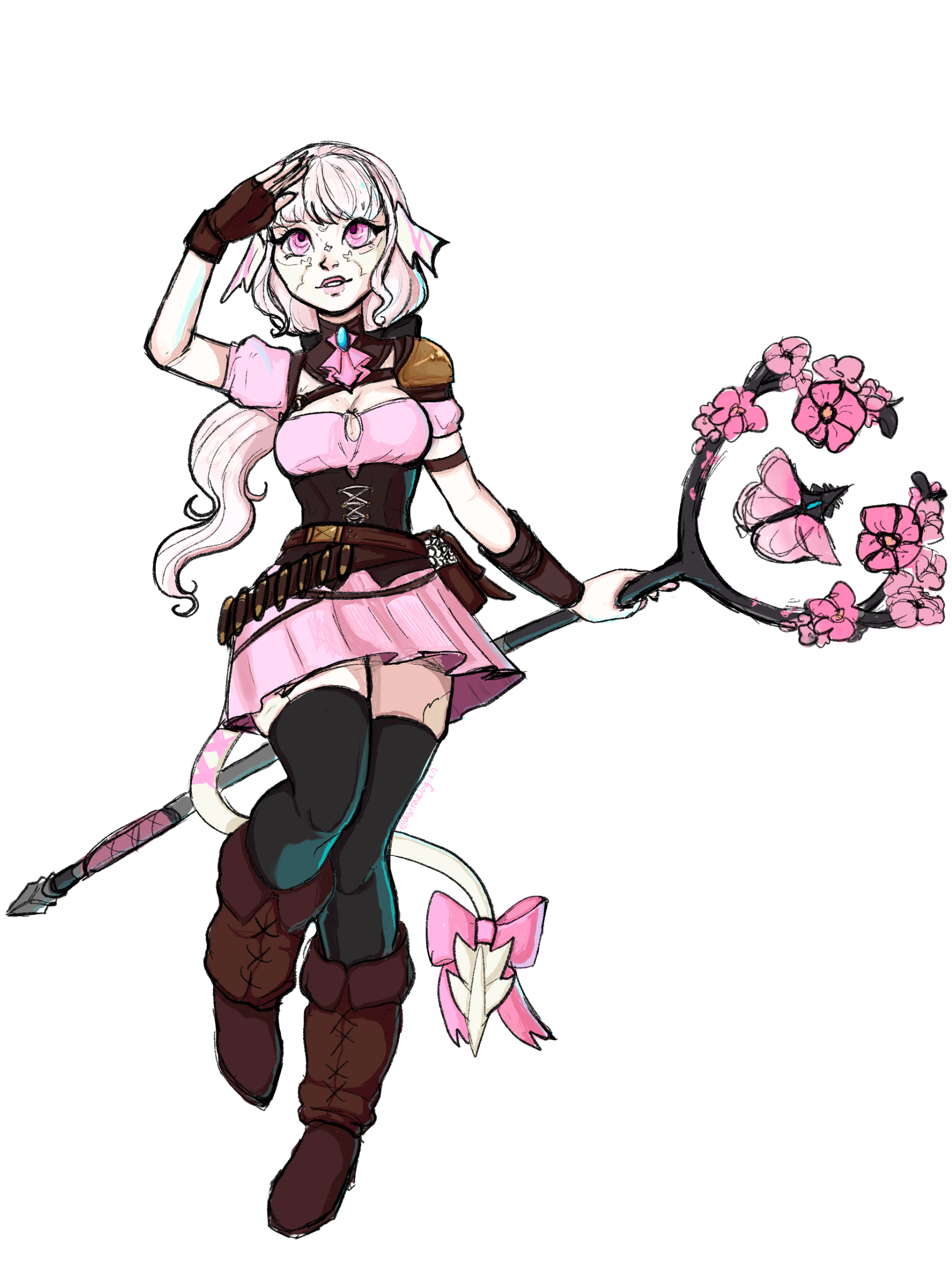 Only just having gotten a chance to really start experimenting with fashion, Astraea loves to wear a wide variety of things. She tends to favor pastel colors (especially pinks) or monochromes (whites and blacks, not really grays), and prefers clothing that gives her extra senses of movement. Shoes are a huge centerpiece of hers, and she loves thigh or knee high boots - heeled, sometimes, even in impractical situations (where she is otherwise surprisingly meticulous about the practicality of her wardrobe). It is often pointed out to her that she tends to not wear pants vs skirts or MAYBE shorts, but…eh. She has nice legs, right? She also has a tendency to accessorize with flowers in her hair, or occasionally a very small or very large hat.